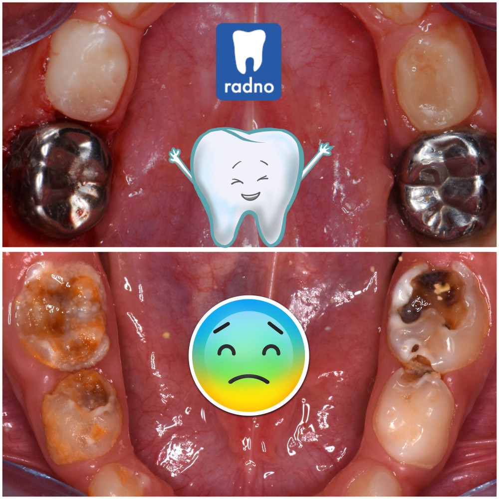 Když jsou zuby zkažené a rozpadlé, děti čištění mnohdy velmi bolí a zuby si nechtějí nechat čistit. Destrukce zubu se urychluje a rozjíždí se začarovaný kruh.