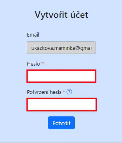 Zadejte heslo, kterým se budete přihlašovat do svého účtu, a potvrďte jej.