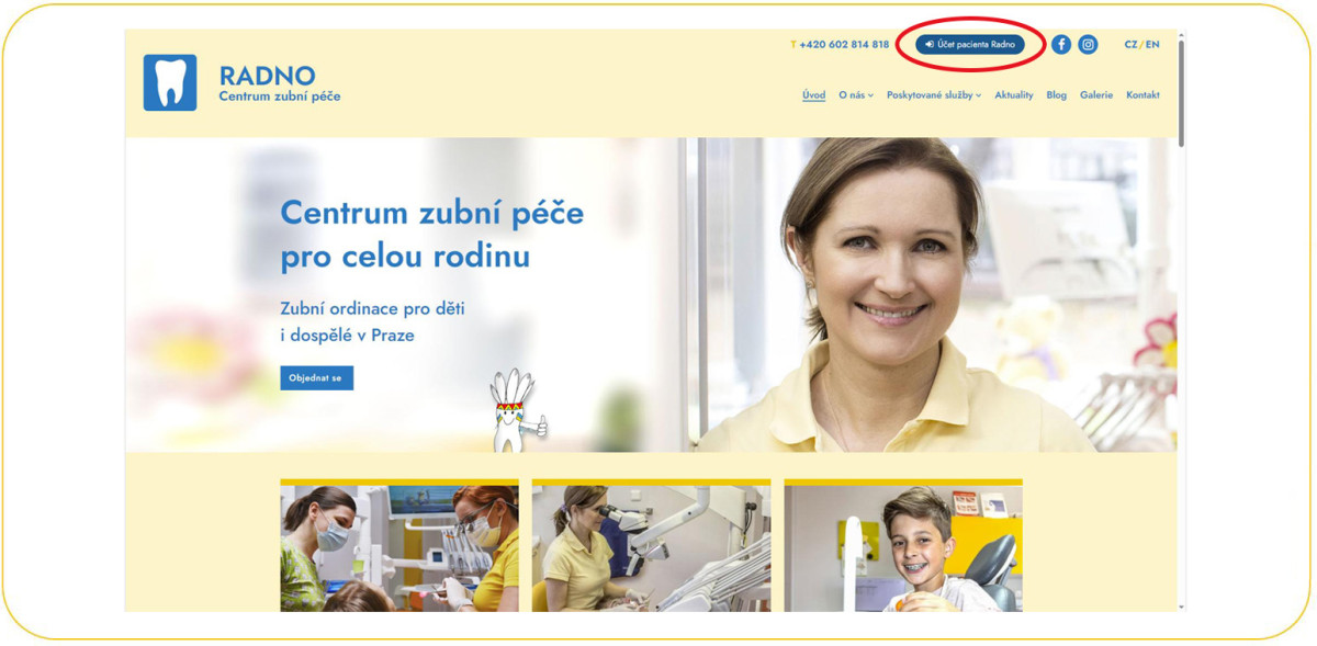 Pro vstup do svého účtu klikněte na tlačítko "Vstup do účtu pacienta Radno" níže a přihlašte se svou e-mailovou adresouheslem.